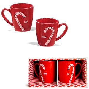 SET/2 American Atelier Mom & Dad Candy Cane Mug, Stoneware, 15 oz, 3.9"Dx4.5"H
