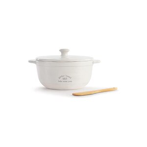 Demdaco Bake Some Yum White Stoneware Baking Crock 6"Dx3"H w/Wood Spreader 6"L