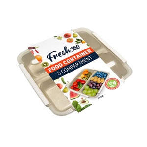 Fresh 360 Bento Lunch Box 3 Compartment, Natural, Square, 37oz, 7.5"x7.5"x2.5"H