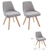 Thora Dining Chair SET/2 Light Grey Fabric, Oak Finish Wood Legs 23"Wx19.5"Dx32.5"H