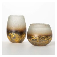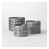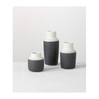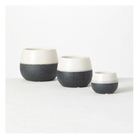 Blue & White Woven Look Ceramic Squat Vase 4.8"Dx8"H