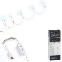 Roman 50 LED Cool White Starry Lights, 10 Function & Timer, Silver Wire, USB, 16ft L